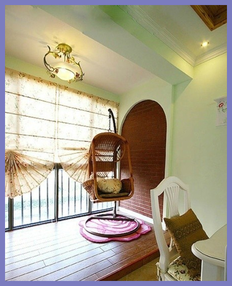 【趣味秋千椅】家里有個(gè)秋千是很多朋友童年的愿望,現(xiàn)在就到實(shí)現(xiàn)的時(shí)候了!內(nèi)陽(yáng)臺(tái)的戶型是比較棘手的,不能做成生活陽(yáng)臺(tái),在客廳夠大的前提下這一塊面積可能就有些浪費(fèi),不如就當(dāng)做一個(gè)休閑區(qū)域吧,特別是有小孩的家庭,小孩一定很喜歡這樣的區(qū)域。