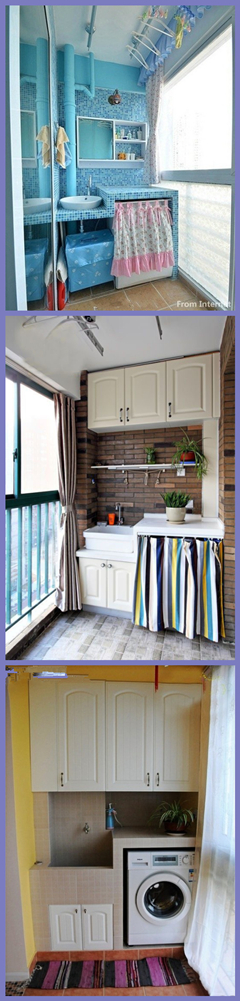 【實(shí)用洗衣臺(tái)】實(shí)用主義的你一定最愛(ài)這種設(shè)計(jì)。通常陽(yáng)臺(tái)的功能就是晾衣服,不如就把整個(gè)洗衣間放在這里,但是不要隨隨便便的就把洗衣機(jī)放在那里喲,像這三個(gè)案例一樣去設(shè)計(jì)吧!美得讓你愛(ài)上洗衣服。