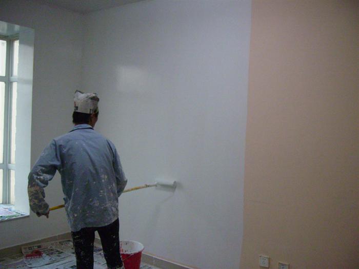 4、在深色的舊石灰墻上(膠白墻面除外),包括斑點較多的墻面上刷新色時,應(yīng)先用白灰水滿刷一遍,待干燥發(fā)白后再套刷新色。
