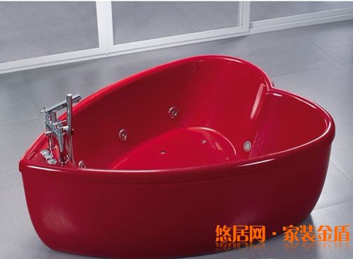 心形浴缸一般放置在房間角落處,其占地面積較大,但通常剛好可以利用空置的地方,一舉兩得。心形浴缸兩邊一般為1.5m的規(guī)則形狀,也有兩邊不同的,所以大家選購(gòu)前要量好衛(wèi)生間的尺寸。