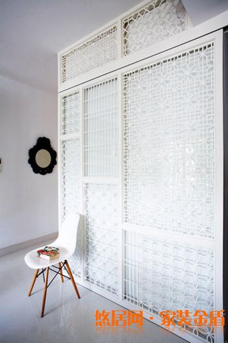一個(gè)融合了傳統(tǒng)東方窗花元素的隔斷墻,刷上了典型的北歐白,形成了一個(gè)美麗的混搭風(fēng)隔斷墻體,同時(shí)也奠定了空間的基礎(chǔ)風(fēng)格。