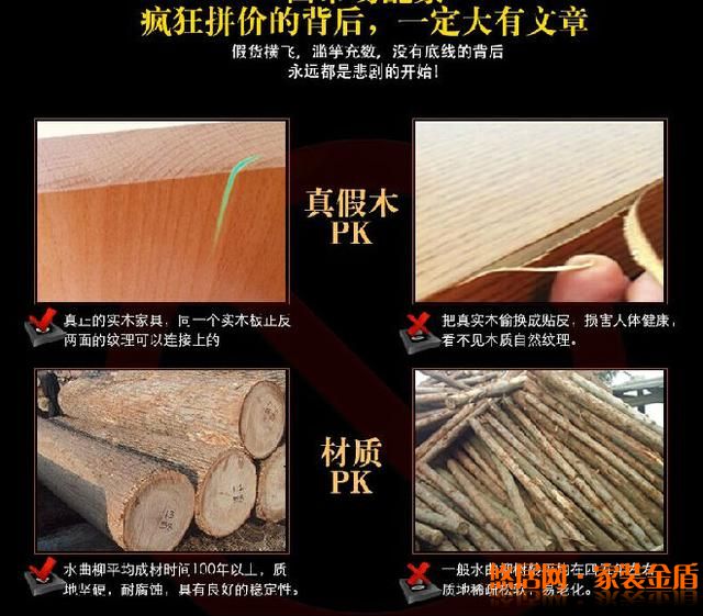 判斷樹種普通實(shí)木家具通常采用櫸木、白橡木、水曲柳、榆木、楸木、橡膠木、柞木,而名貴的紅木家具主要采用花梨木、雞翅木、紫檀木。