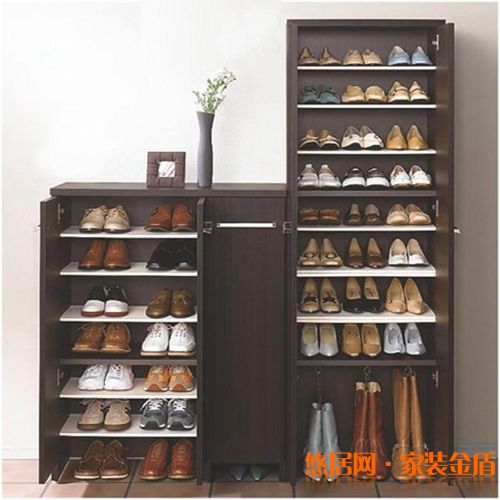 4、鞋柜必須留出一個(gè)較高(不低于45厘米)的隔層,以便于女士靴子、水靴的擺放,而且要保證足夠的深度(因?yàn)橐恍┬杏?0厘米左右)。