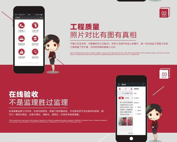 美的家裝修4G服務(wù)系統(tǒng)將美的家裝飾15年的施工經(jīng)驗(yàn)、標(biāo)準(zhǔn)整理成冊以簡單易懂的圖片文字方式發(fā)送給業(yè)主,這是一套與重慶市現(xiàn)行的《重慶市室內(nèi)裝修裝飾工程驗(yàn)收規(guī)程》相等的表,透明的標(biāo)準(zhǔn)化工程,真正讓業(yè)主放心的工程。