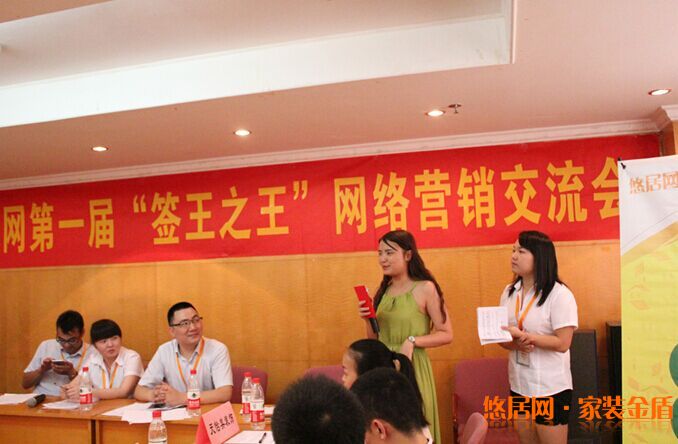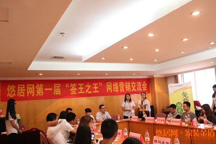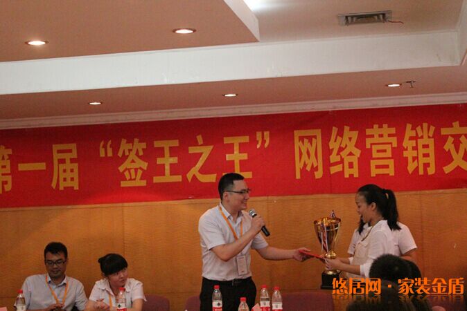 今天我們還為服務(wù)又好,做得又好的裝飾公司頒獎(jiǎng)了呢!希望大家以后都能以他們?yōu)榘駱訂眩。∵@次悠居網(wǎng)舉辦的第一屆“簽王之王”網(wǎng)絡(luò)營(yíng)銷交流會(huì)非常的成功,讓各位網(wǎng)銷精英們受益匪淺,也讓我們受益匪淺。這次交流會(huì)讓我們更加的了解到怎么才能更好的為客戶解決問題,怎樣才能更好的服務(wù)于大眾,也非常感謝他們!