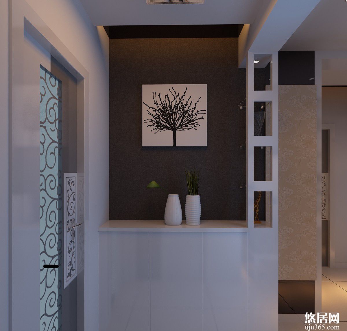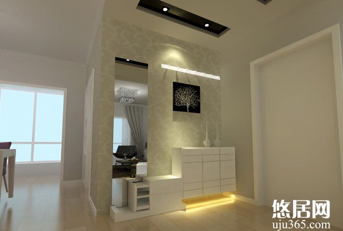 入門的玄關(guān)和客廳本就是連為一體的空間,為了讓整個(gè)區(qū)域看起來(lái)更有規(guī)劃,可以打造一個(gè)玄關(guān)隔斷墻,上面上玄關(guān)柜下面是鞋柜,既能達(dá)到收納的效果更能在玄關(guān)柜上放置盆栽等裝飾品。