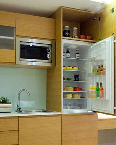 CASE5:角落的合理運用,廚房角落是我們經(jīng)常忽略的地方,這里適宜作為備用糧食的儲藏空間。儲物柜里物品要分門別類地擺放清楚,使用完畢也要物歸原處。操作臺上可用綠植來增添生命氣息,同時那些忌潮濕的食物和電器也適合擺放在此。