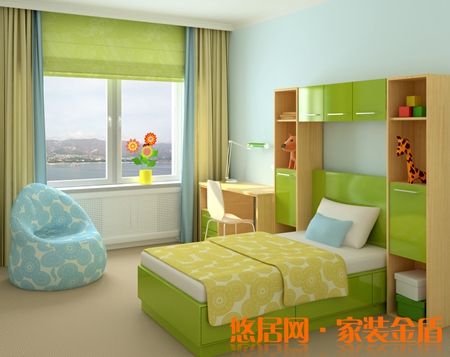 房間顏色:要考慮孩子的喜好,不要使用圖案夸張的壁紙,或把房間一概漆成淡藍(lán)色或粉色,而應(yīng)使用孩子不易厭倦的顏色。