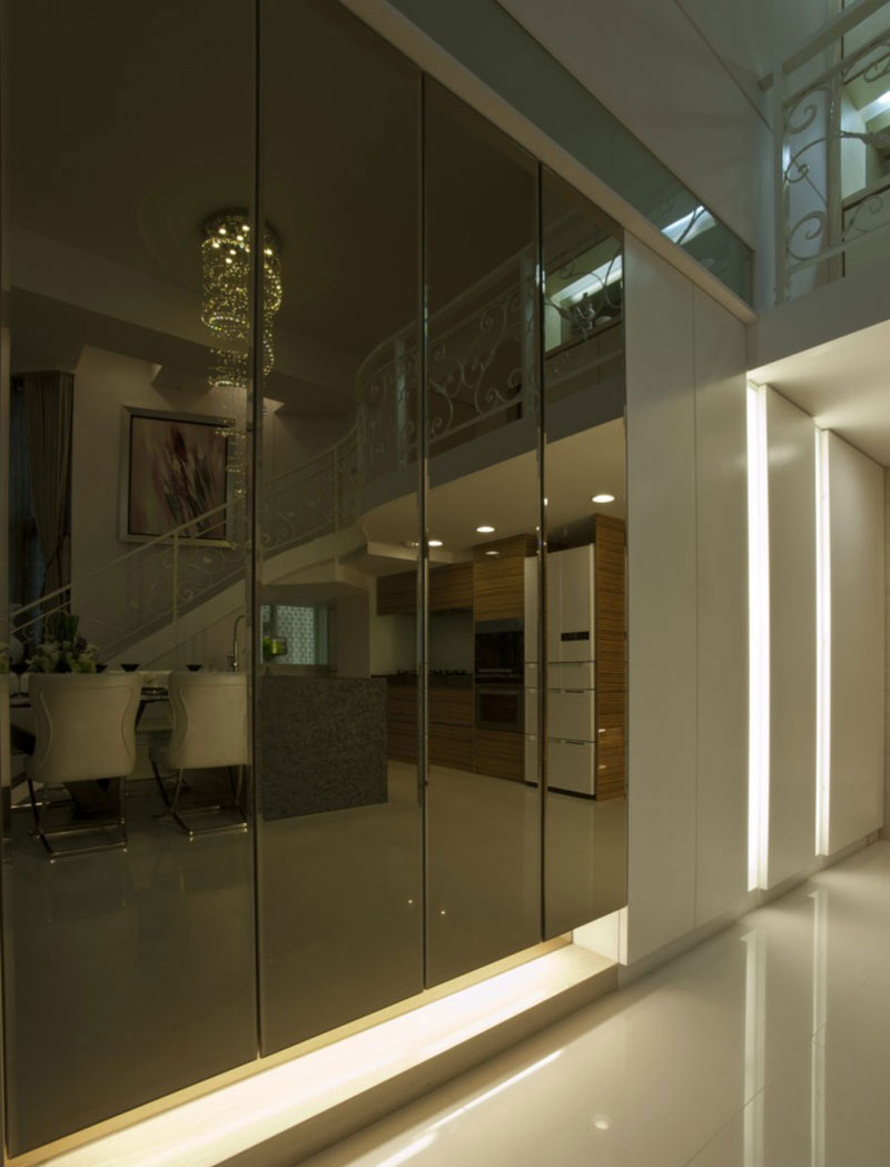 柜體下方的鏤空處,增加燈光效果,柔和視覺的銳利感。