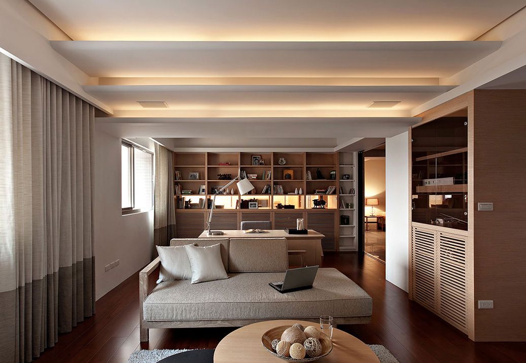 對于坐向位置無法對調(diào),導致壓梁情況產(chǎn)生,設計師也建議,可以利用弧形設計包覆梁體,化解邊角的銳利感。但若梁體本身非常大,經(jīng)包覆后反而更具壓迫感,不妨使用間接照明,柔化梁體的存在,達到修飾的效果。