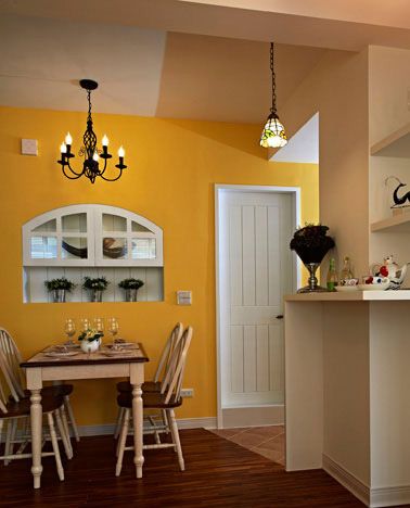 墻面刷上溫暖的亮黃色,讓拱形的小窗和廚房門片都更精巧夢(mèng)幻!