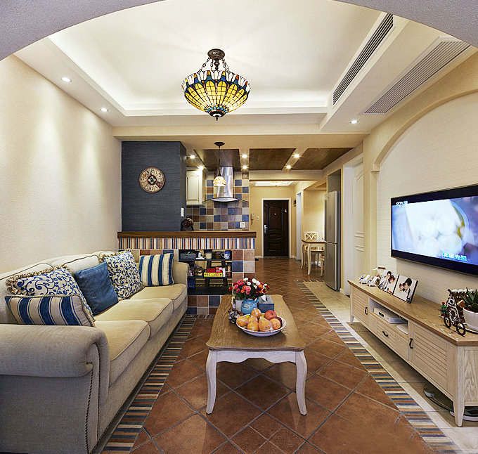 小戶型區(qū)域狹小,一些業(yè)主為了凸顯區(qū)域感,會(huì)在不同的區(qū)域用不同的材質(zhì)與高度來(lái)加以分別,天花也往往與之呼應(yīng),這就造成了更加曲折的空間結(jié)構(gòu)和衍生出許多的“走廊”,造成視覺的阻礙與空間的浪費(fèi)。地面的顏色應(yīng)統(tǒng)一成明度較強(qiáng)而純度較低的色系,地面的色彩應(yīng)略重于家具的色彩,這樣才不會(huì)產(chǎn)生頭重腳輕的感覺。也可以用一些馬賽克、鵝卵石等做一點(diǎn)帶有導(dǎo)向性的玻打線,打破沉悶的視覺效果。