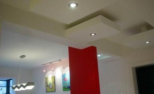 凹凸吊頂:更多的用于餐廳,造型比較復(fù)雜,主要作用突出局部空間的層次的變化,過(guò)道搭配射燈效果更好一點(diǎn),不過(guò)這種凹凸的吊頂有一個(gè)缺陷就是不容易做清潔。