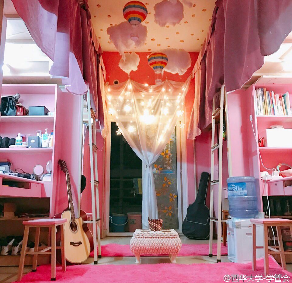一周前,西華大學舉辦了一場“美寢大賽”,其中一間參賽的女生宿舍因其粉嫩的格調(diào)、精致的裝飾,堪稱“公主房”