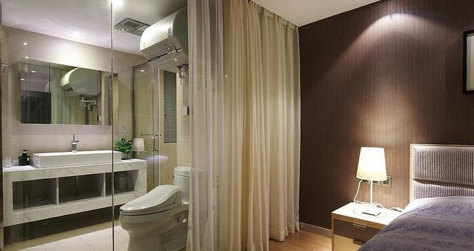 1.首先要確定你的臥室的私密性、通風性、和采光度三個因素不容否認,主臥帶衛(wèi)生間很方便,但是與之而來的排氣性能是一個主要考慮的因素。玻璃隔斷有全隔斷半隔斷和混隔斷,一封到頂的全隔斷不會泄露潮氣到主臥室,一般的半隔斷不采用,只是使用10~30公分的防水隔板當底座,防止水流到別處,混隔斷就是多種材料混搭的使用。