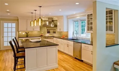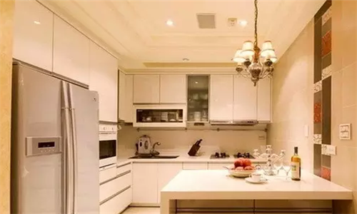 中餐很講究“色”,廚房?jī)?nèi)光線要充足,燈光的顏色盡量選白色,除了對(duì)整個(gè)廚房的照明,在洗滌區(qū)和操作臺(tái)也要增設(shè)櫥柜專用射燈,以方便晚上做飯有充足的光源。