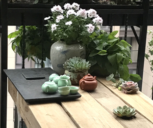 天氣晴朗的時候,一壺茶靜靜地等待著客人的到來。