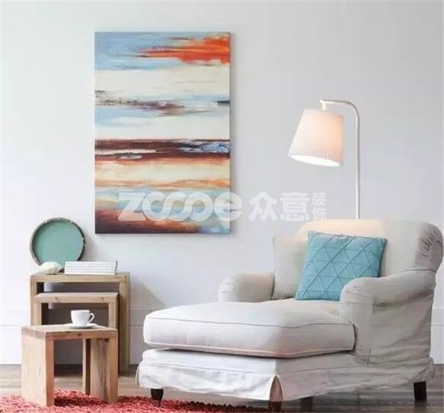 朝北的房間由于沒有陽光的直接照射,所以應(yīng)選用暖色調(diào)的壁紙且色度要淺一些。白色壁紙,為了避免單調(diào),配上彩云畫,有種抽象的美。