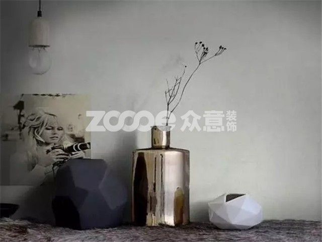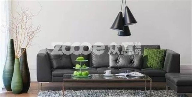 白色的壁紙墻面,可以在客廳擺上黑色皮沙發(fā),綠色、棕色高口細(xì)花瓶和樹枝插花,使得整個空間活力和格調(diào)并存。