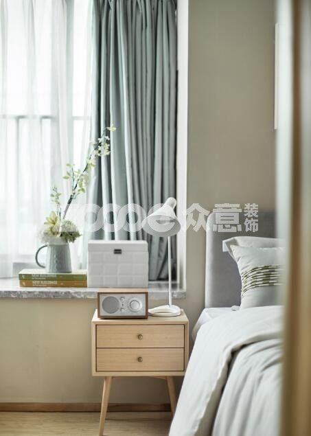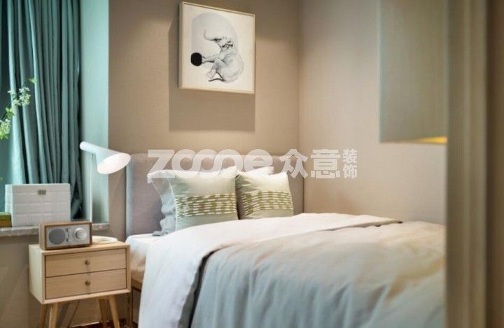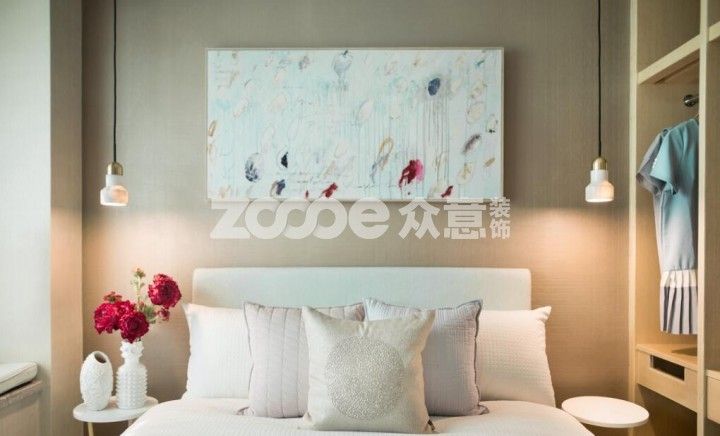 嬰兒藍(lán)帶來純凈的主臥空間,那灰綠色就讓空間顯得治愈舒緩;與白色的背景搭配,結(jié)合硬裝線條,顯得輕盈不沉重;整個空間柔和溫馨,色彩搭配的貼近自然。