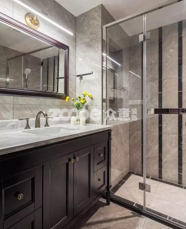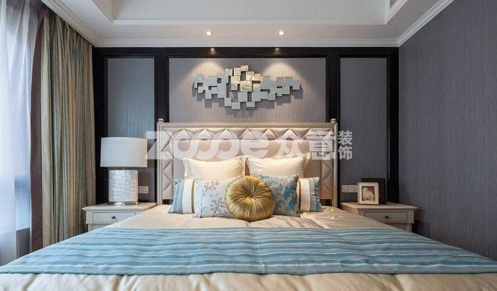 主臥墻面采用高級灰,黑色木質(zhì)勾勒出三框造型,金屬裝飾做點綴,營造寧靜舒適的主臥空間。