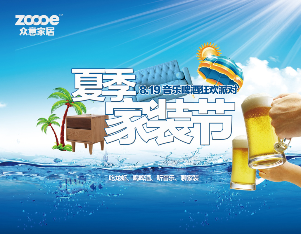8月19日,眾意裝飾音樂啤酒狂歡節(jié),這里有9800㎡家裝體驗館、專業(yè)設計師以及夢想空間的藍圖,喝啤酒,吃龍蝦,聽音樂,我們一起聊聊有溫度的家居生活。