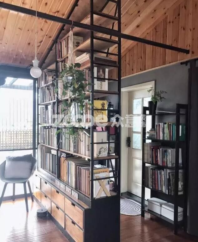 你沒看錯,用書柜做隔斷,就像徜徉在圖書館的書海里。