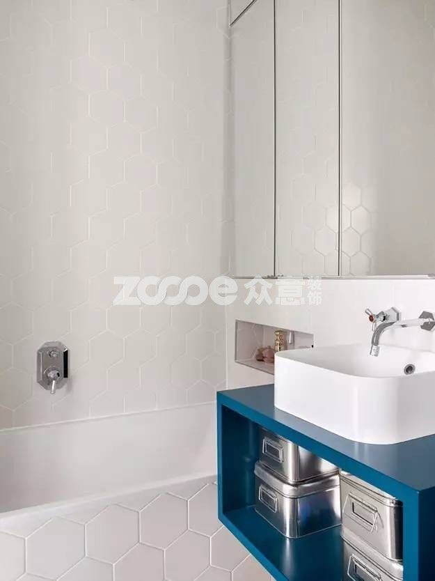 六角磚無處不在,單純的運用白色瓷磚遠沒有六角磚來的更有造型和設計感。