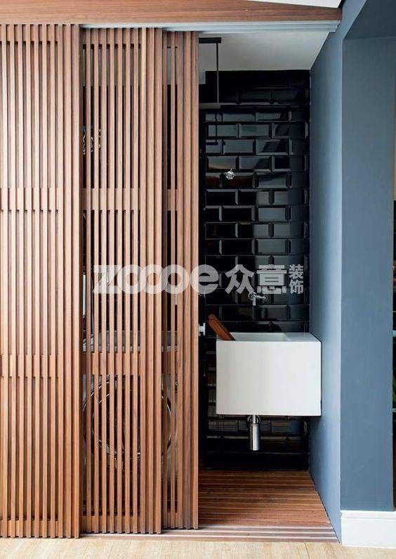 木質(zhì)推拉門,厚重且有質(zhì)感,如果是吊軌設(shè)計,更加別出心裁。