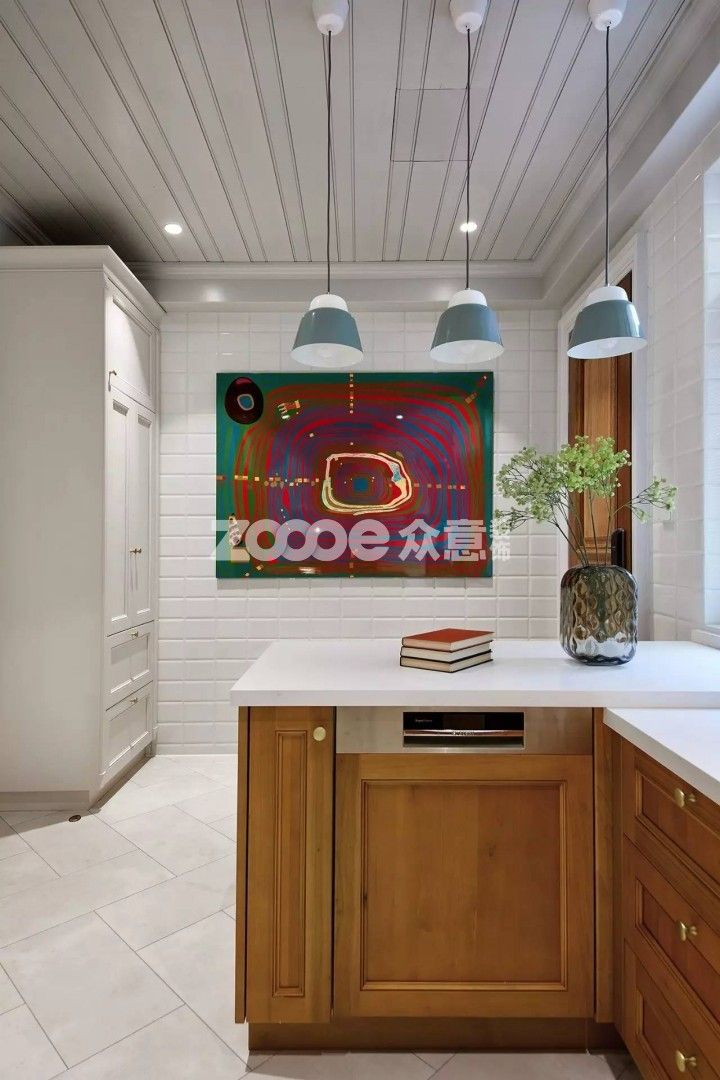 廚房并沒有發(fā)揮眾意裝飾設(shè)計(jì)師天馬行空的想象,畢竟在廚房,通透敞亮和舒適愉快占據(jù)了家居文化中最大的兩部分;櫥柜采用了上下粉色的做法,讓層次更加明顯,不會(huì)一白到底。
