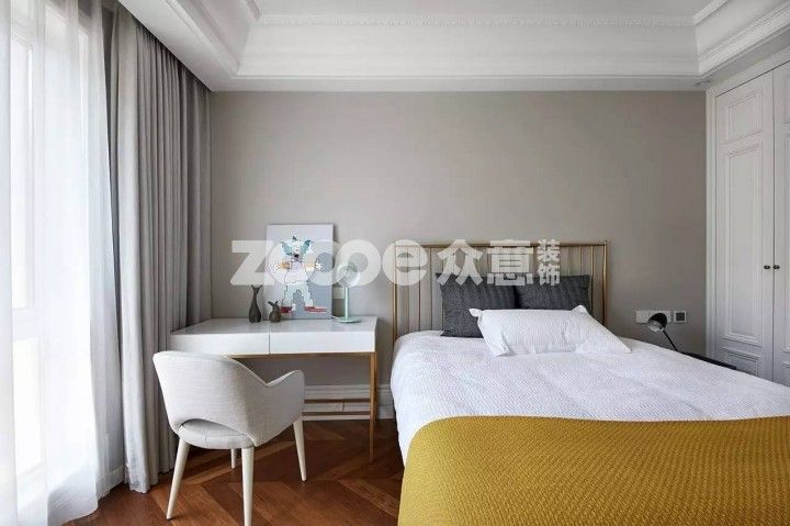 而大兒子房則相對(duì)顯得穩(wěn)重一些,運(yùn)用當(dāng)下最流行的藕粉色,搭配英倫格子的床,在不同光照時(shí),反復(fù)回味這其中的細(xì)節(jié)和質(zhì)感。