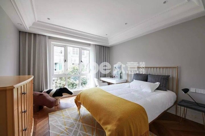 另一邊則是兩個(gè)兒子的臥室,各有各的特色,小兒子房活潑俏皮,黃色的菱格斗柜和動(dòng)物造型的玩具相互協(xié)調(diào),讓人沉醉在童年時(shí)期的美好當(dāng)中。