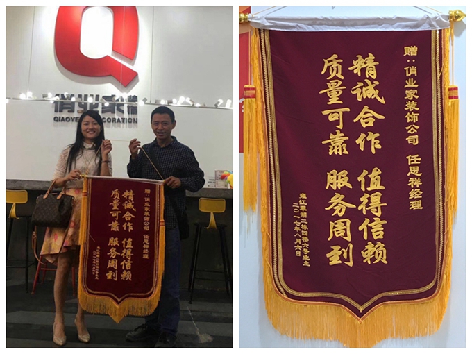 2017年9月,重慶裝修公司俏業(yè)家裝飾獲雍江翠湖2棟業(yè)主老師的嘉獎(jiǎng)錦旗——“質(zhì)量可靠,服務(wù)周到,精誠(chéng)合作,值得信賴(lài)”。