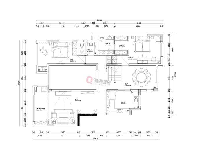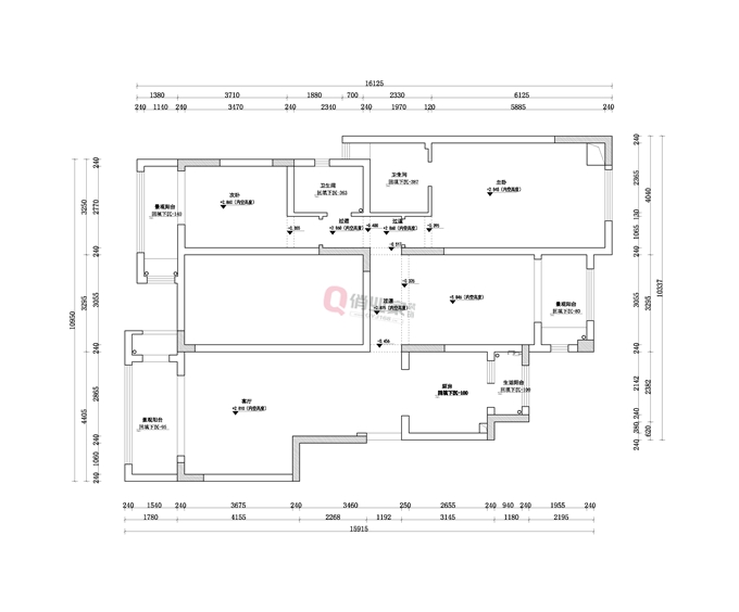 2、廚房較小,過道空間浪費(fèi)較多,利用率低。