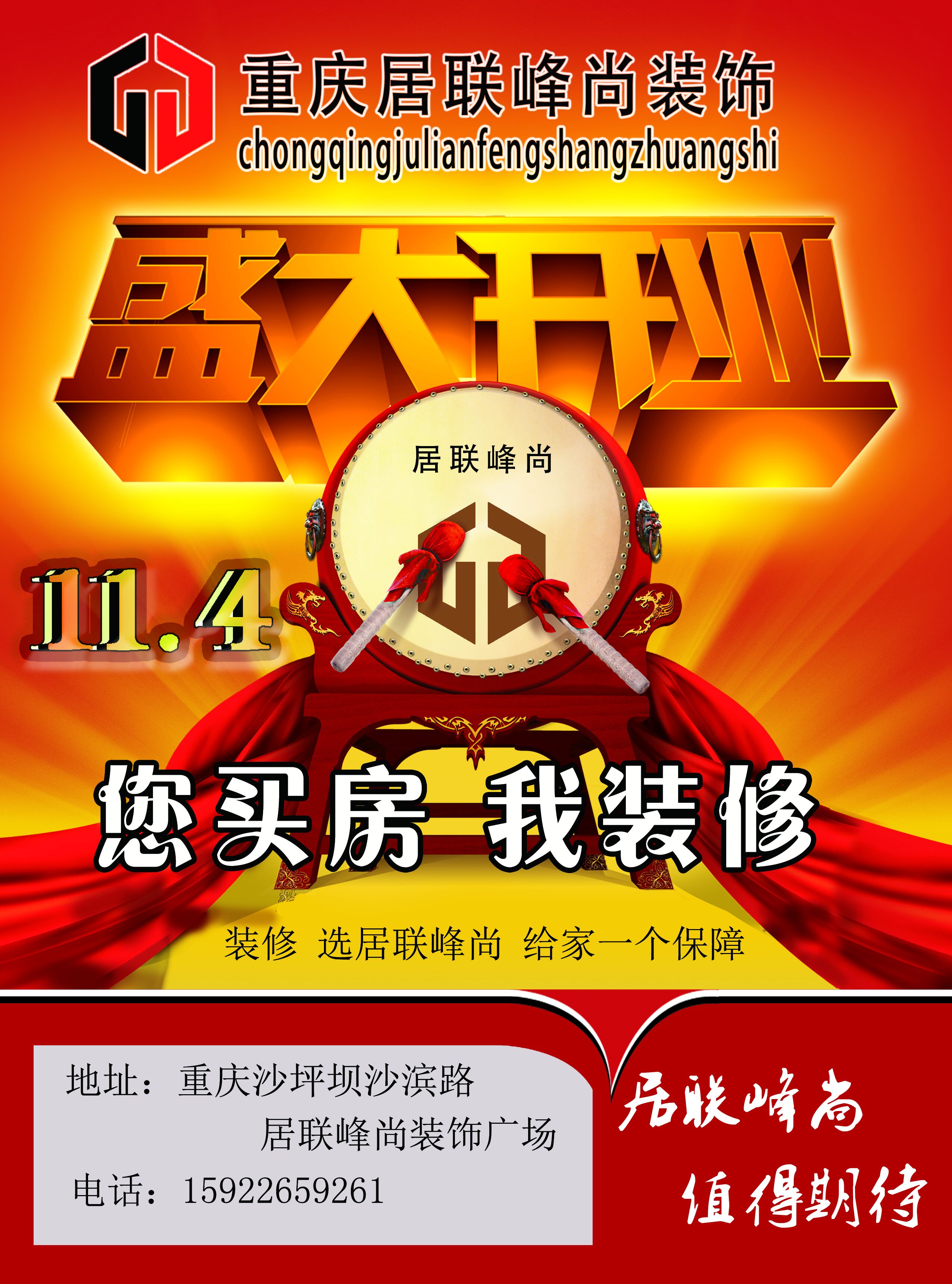 11月4日重慶居聯(lián)鋒尚將在沙坪壩沙濱路居聯(lián)鋒尚裝飾廣場正式開業(yè)?。?!