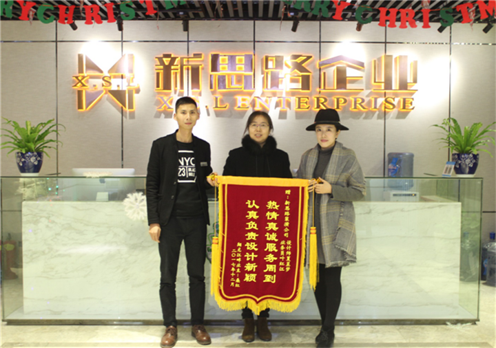 同時(shí),桑老師還為市場(chǎng)部葉主管和設(shè)計(jì)師夏呈夢(mèng)送上一面書寫著“熱情真誠(chéng),服務(wù)周到,認(rèn)真負(fù)責(zé),設(shè)計(jì)新穎”的大紅錦旗。