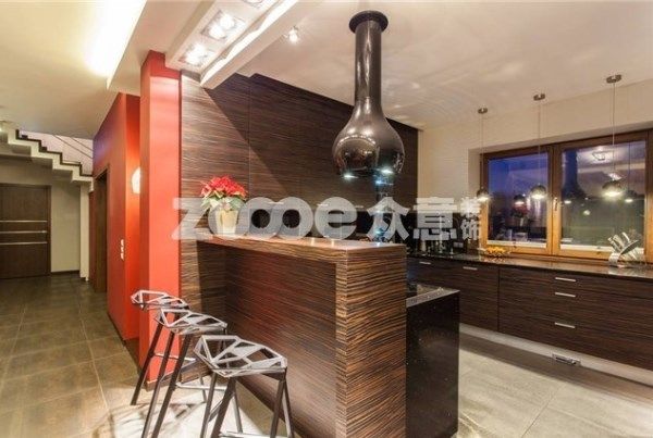 有些開放式餐廳也與客廳相連,做一個造型簡單大方的吧臺隔斷,或放置一個酒柜,也不失為一種經(jīng)濟實用的設(shè)計。
