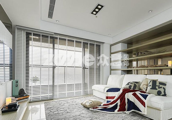 客廳內(nèi)的家具都比較大型,如大型的沙發(fā)、置物架、電視柜等等,沙發(fā)選擇了白色為主色,且材質(zhì)比較厚重,而置物架則是實木材質(zhì),沒有過多的進行顏色處理。從整體上看,這個客廳的裝修比較厚實,吊頂?shù)臒麸椚绻^于厚重的話,整個客廳的負重感將會非常強,因此在這個房間內(nèi),吊頂燈飾選擇了內(nèi)嵌式的裝修方式,燈飾是簡單的長方形,內(nèi)嵌在吊頂之中,不會影響客廳的整體裝扮。