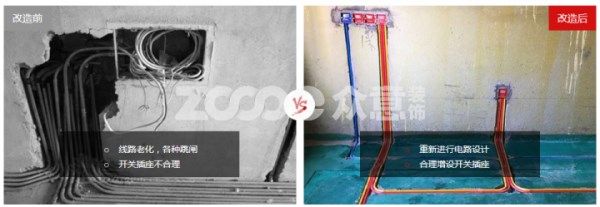 在進行水路、電路、墻面這三樣改造的時候,一定要對房屋進行實地勘察,看看有沒有明顯的裂紋、是否平整、有無脫落和起砂的現(xiàn)象,如果有哪些問題,那么就要進行修補了,另外在門窗改造方面要留意門窗是否老化了,如果老化嚴重的就必須拆掉重做了。因為水電改造是很重要的,所以在改造之前一定要做一下閉水試驗,還有就是很多舊房子都存在電線老化、違章布線的問題,這個也是需要重新改造的。
