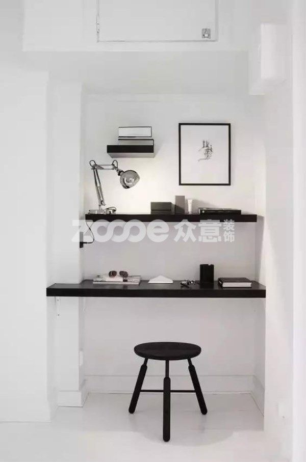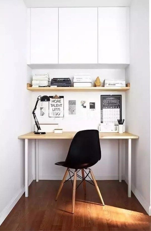 如果走廊盡頭空間足夠的話,不妨加個小擱板,一張小桌椅,改造成簡單的工作區(qū)。這種改造方式就是最明顯的變廢為寶,原本空著的位置實(shí)用性瞬間被發(fā)掘了。