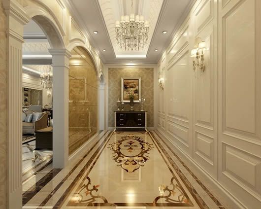 地板顏色宜較深沉:深色象征厚重,地板色深象征根基深厚,符合風水之道。如要求明亮一些,則可用深色石料四周包邊,而中間部分采用較淺色的石材。如若選擇在玄關(guān)鋪地毯,其道理亦同,宜選用四邊顏色較深而中間顏色較淺的地毯。