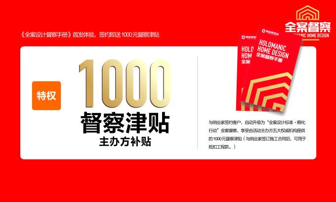 凡與俏業(yè)家簽約的客戶,自動升級為“全案設計標準·孵化行動”全案督察,享受由活動主辦方五大權威機構提供的1000元督察津貼(可用于抵扣工程款)。