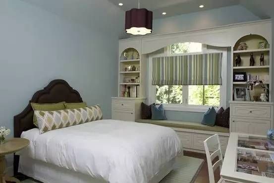 臥室里一般要放置大量的衣物和被褥,因此裝修時(shí)一定要考慮儲(chǔ)物空間,不僅要大而且要使用方便。床頭兩側(cè)最好有床頭柜,用來放置臺(tái)燈、鬧鐘等隨手可以觸到的東西。有的臥室功能較多,還應(yīng)考慮到梳妝臺(tái)與書桌的位置安排。