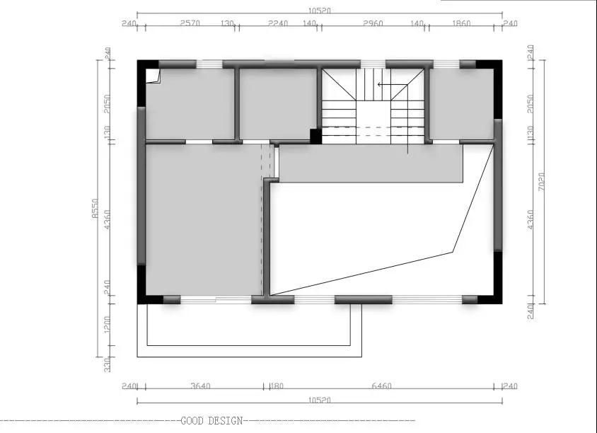 戶(hù)型缺點(diǎn):側(cè)面承重梁阻擋樓梯;縱梁重且低; 無(wú)通風(fēng)采光。