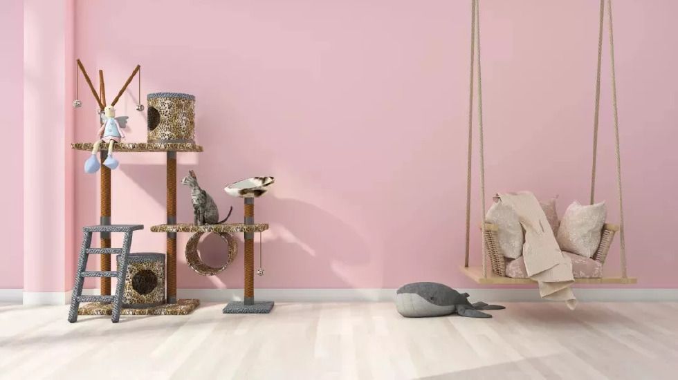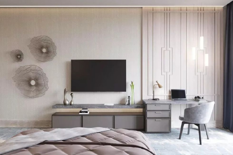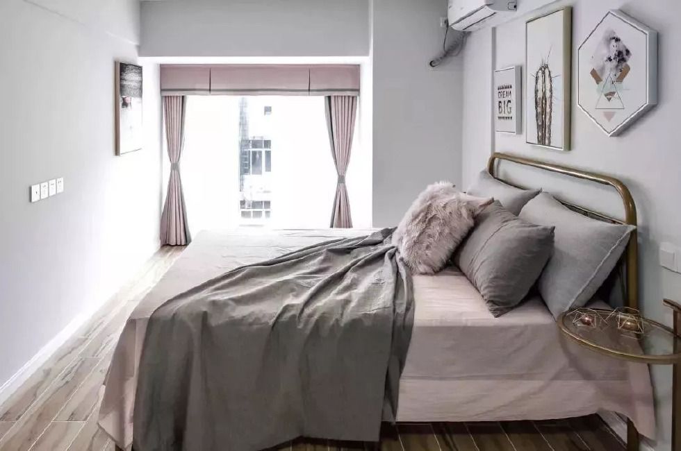 采用深灰與煙粉拼接的方式 ,讓空間更具設(shè)計(jì)感與美感。