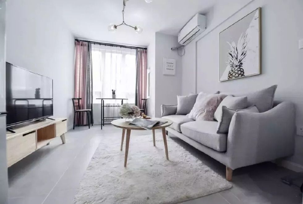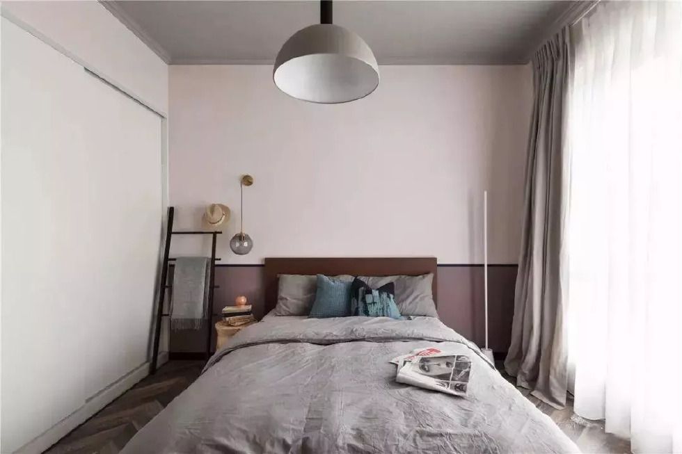 巧妙地在客廳將煙粉與灰結(jié)合,利用地板與水泥材質(zhì)本身的灰色,自然不做作,煙粉只作為四面墻中的一面出現(xiàn),不用大費(fèi)周章,空間也具有多樣的美感。