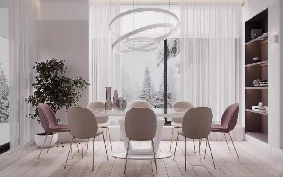 在煙粉與灰的搭配中,我們也可以在同一空間使用多種材質(zhì)與紋理的效果比單調(diào)的統(tǒng)一更有趣,也滿足在家中創(chuàng)作的欲望。