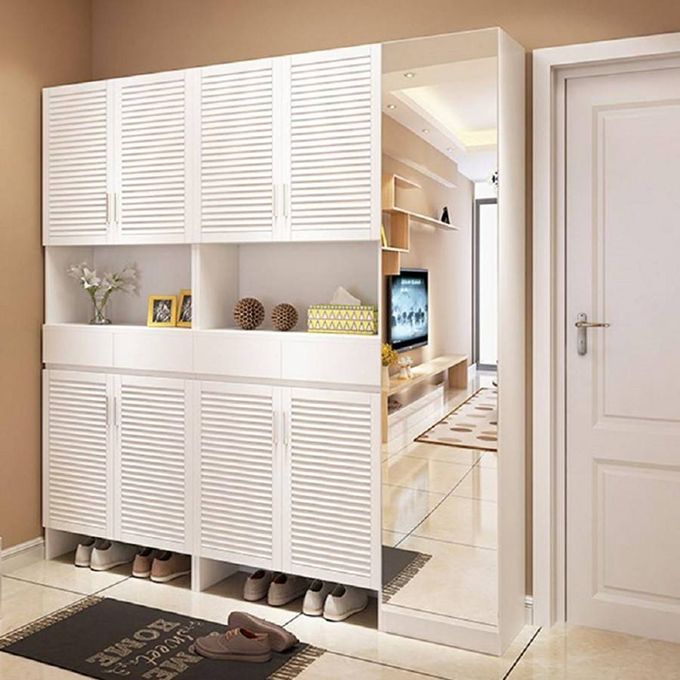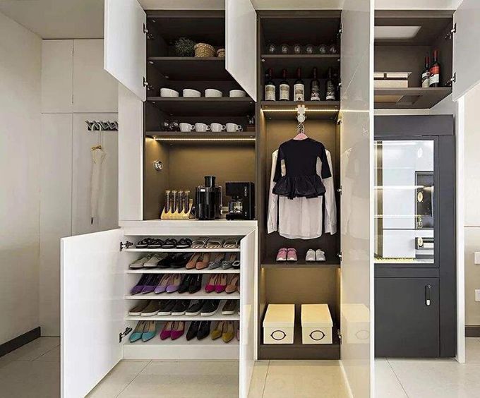 2、其次,要根據(jù)房屋的整體裝修風(fēng)格設(shè)計,最好用百葉門,可以防止異味,而且柜內(nèi)每一格都不要釘死,預(yù)留多個不同的高度,這樣自由而靈活,也能使鞋外面的泥土灰塵直接掉落到最底層,方便清理。