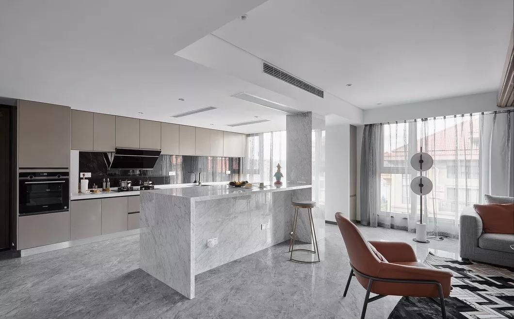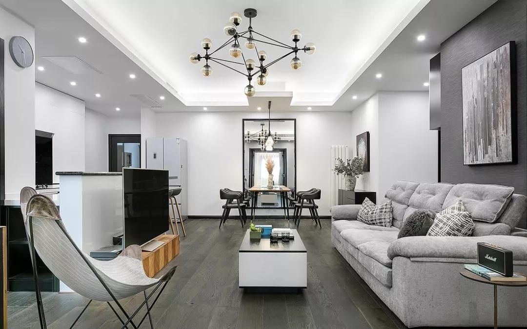 全吊頂在極簡、北歐風(fēng)格中用的比較多,做全吊頂除了可以把電線、筒燈、燈帶等隱藏起來,也便于安裝通頂大柜子,柜子的頂部能和天花板完全貼合。