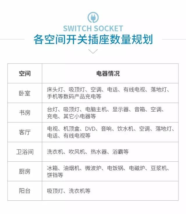 裝修時,你知道家里各個空間應(yīng)該配多少開關(guān)插座嗎?用組圖告訴你每個空間的開關(guān)插座的配量。
